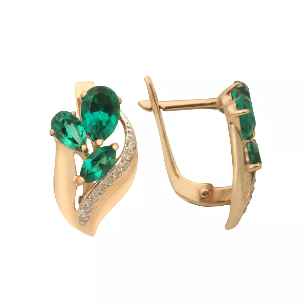 - Серьги с изумрудом и фианитом из золота