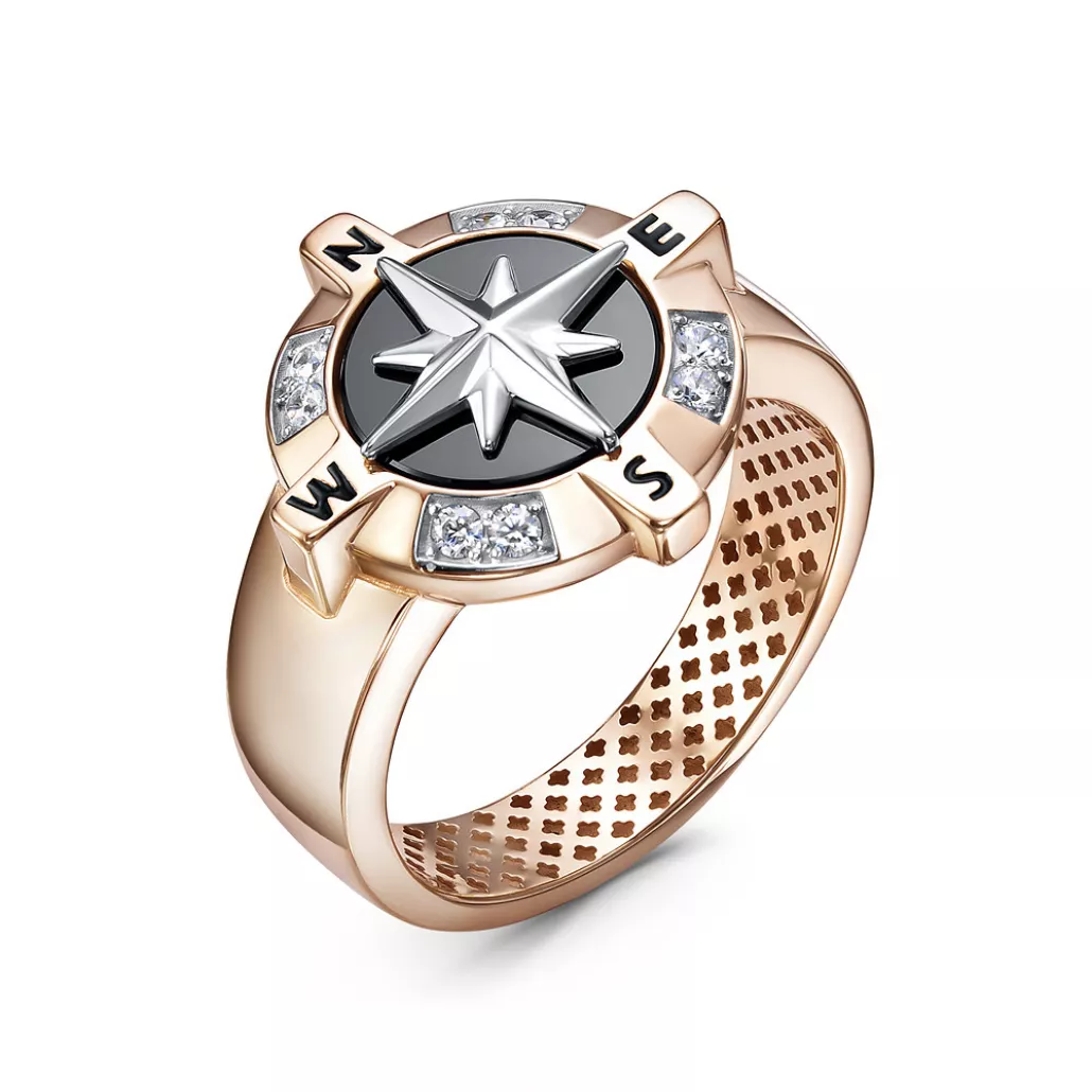 Кольцо-печатка с ониксом и фианитом из золота