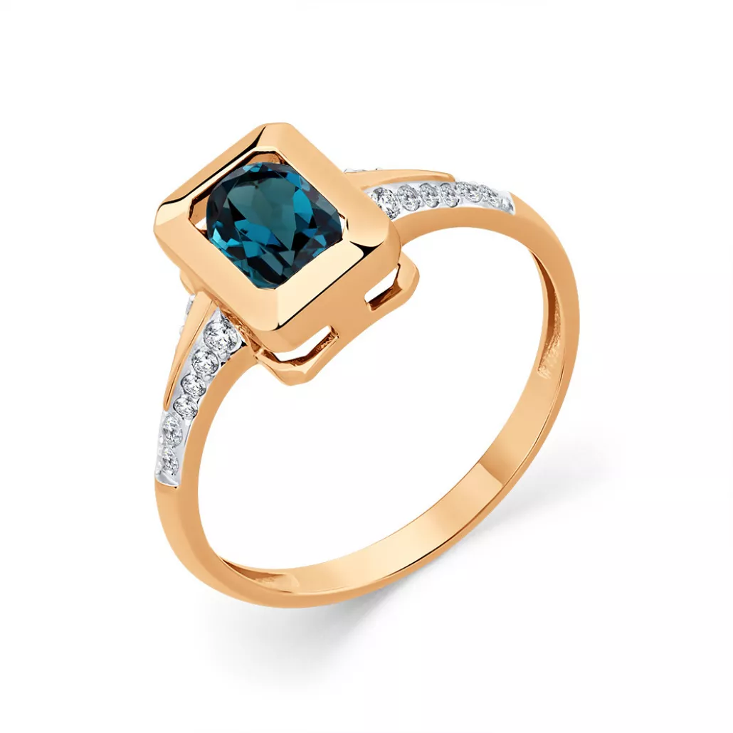 - Кольцо с топазом и фианитом из золота